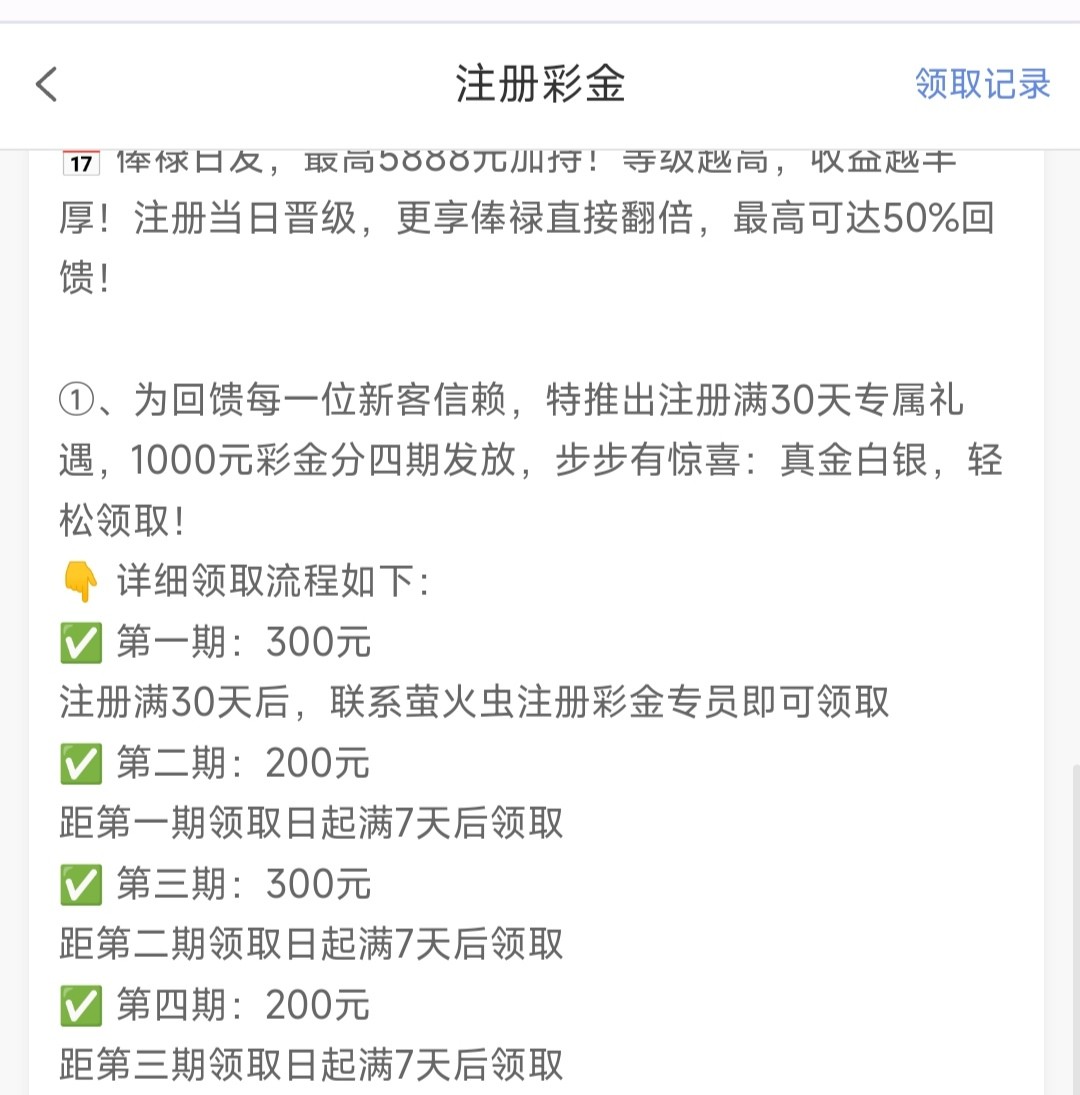 我说白了就是杀猪台,要注册满一个月而且期间每天都要充值100以上,就是杀这21天内充值的金额