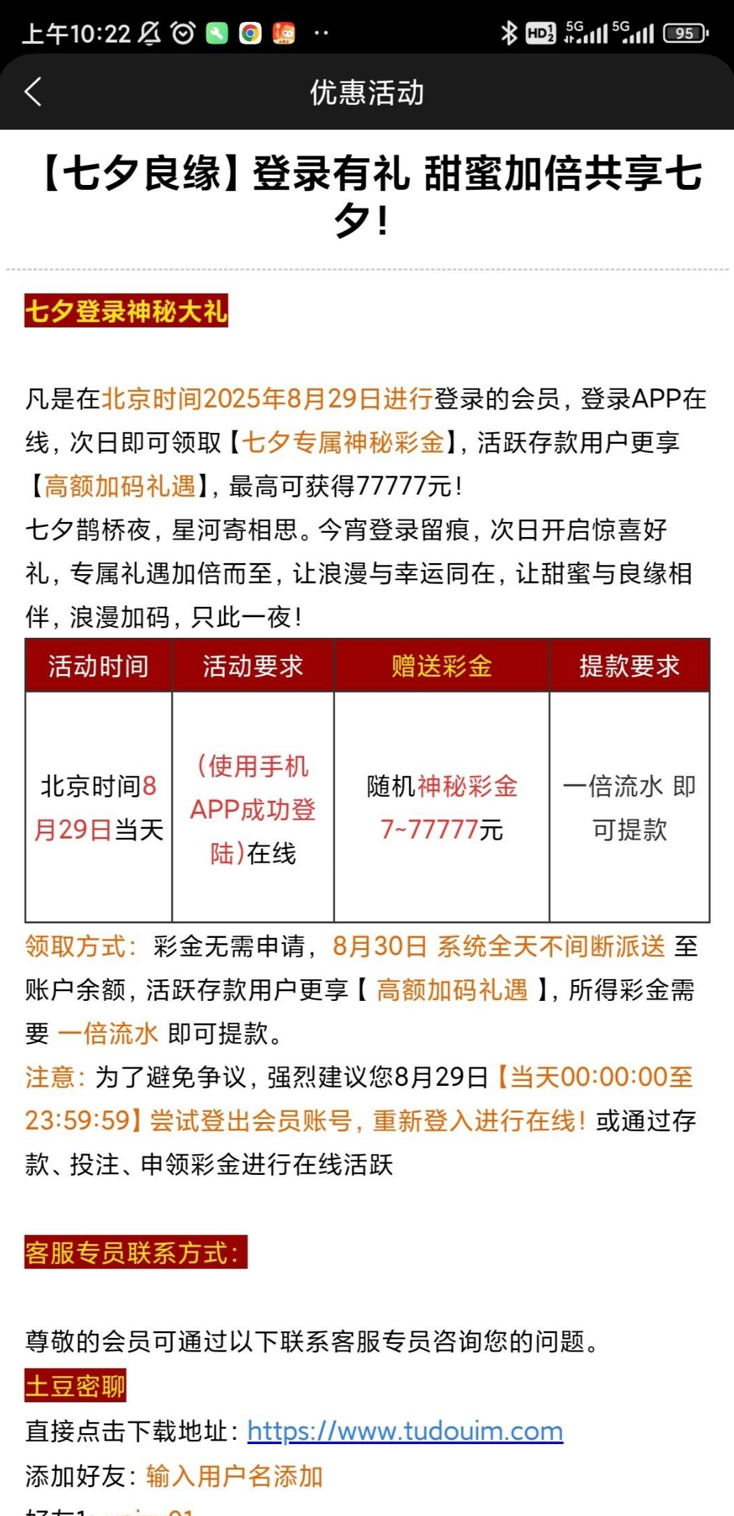 【葡京662/280】七夕登录彩金