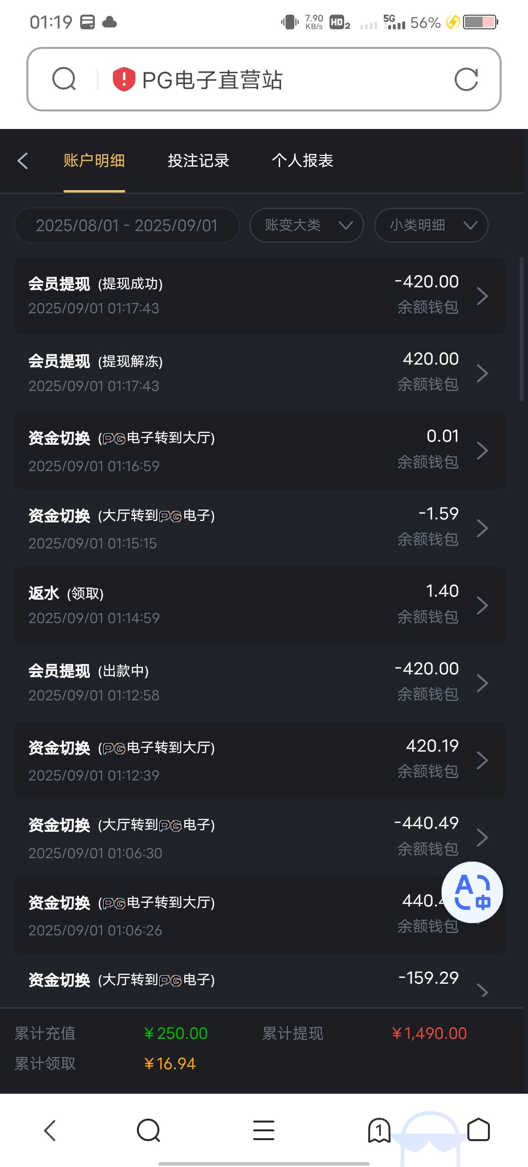 这台子可以充值250提1400