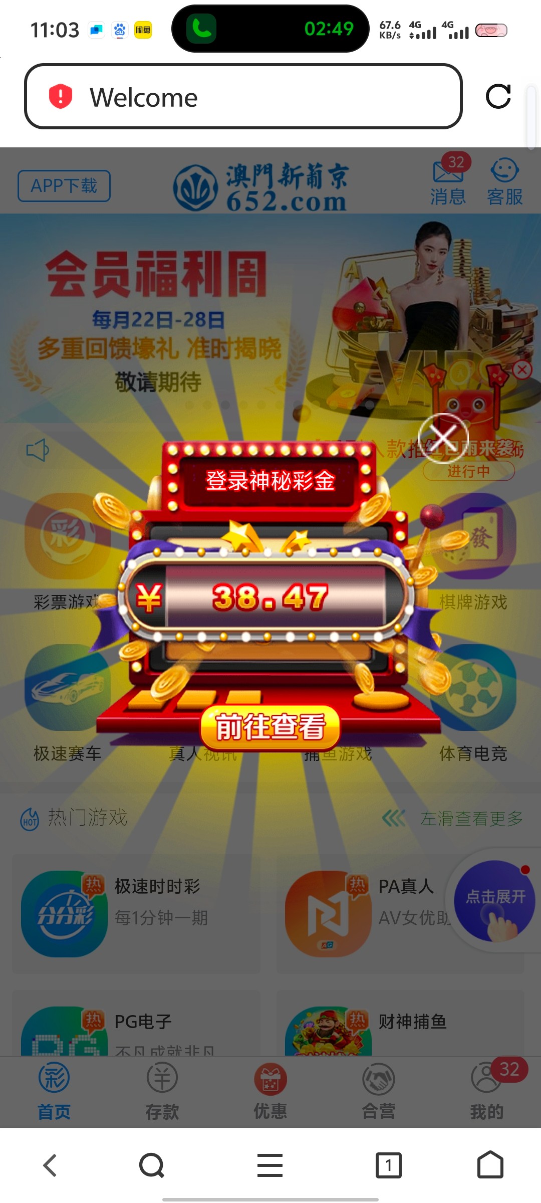 打电话说登录就有彩金领了38充值过的去看看