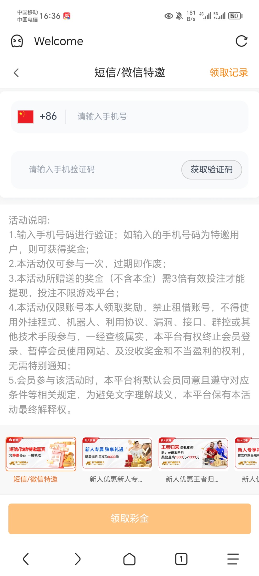 碰瓷特邀试试,我之前注册过,上去一看有神秘彩金