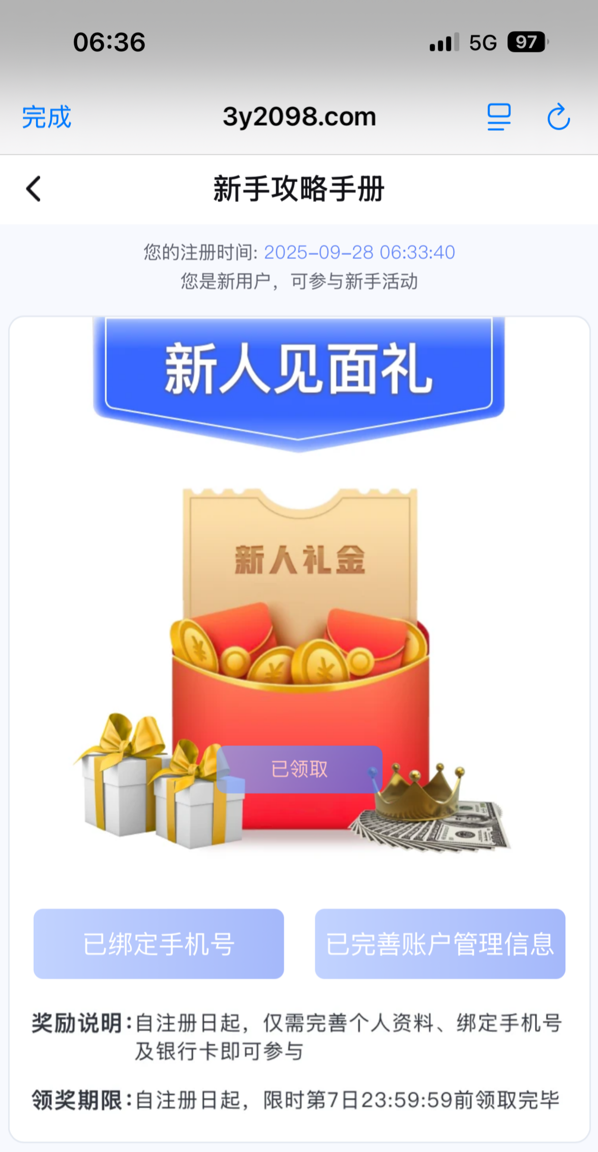 注册活动绑定信息(收款,手机号)领10
