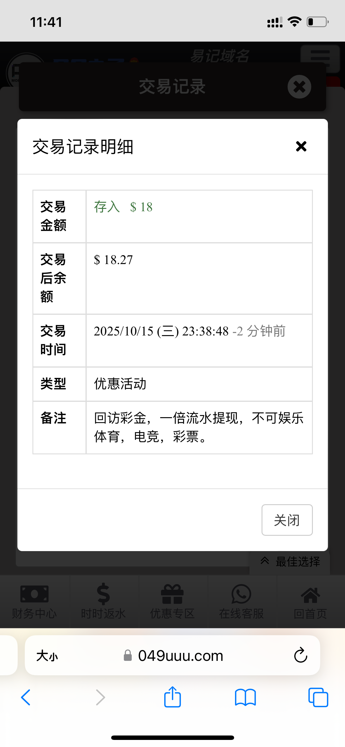 出款情况:自测(
