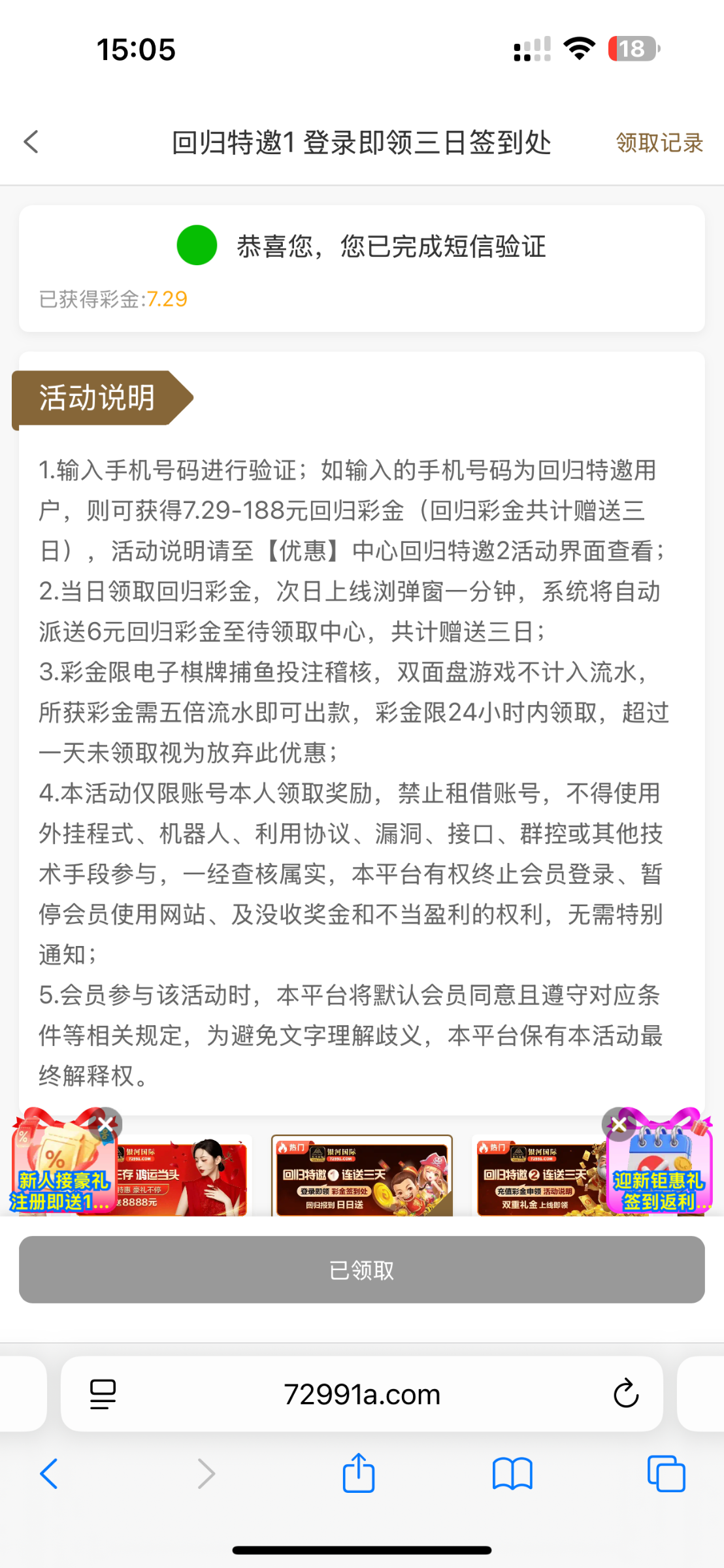 打电话来送三天回归特邀彩金 提现要充五十