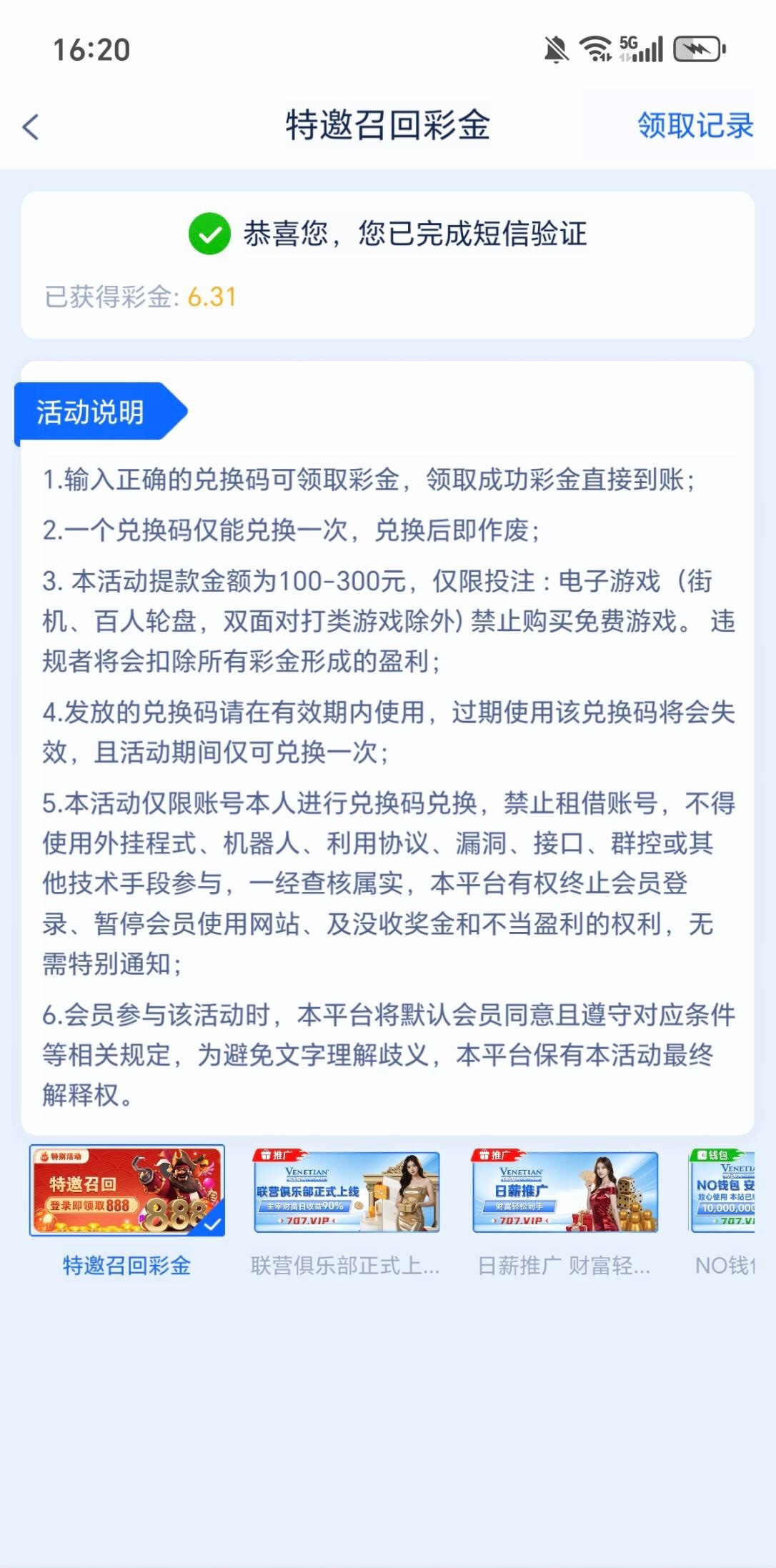 威尼斯707 回归彩金