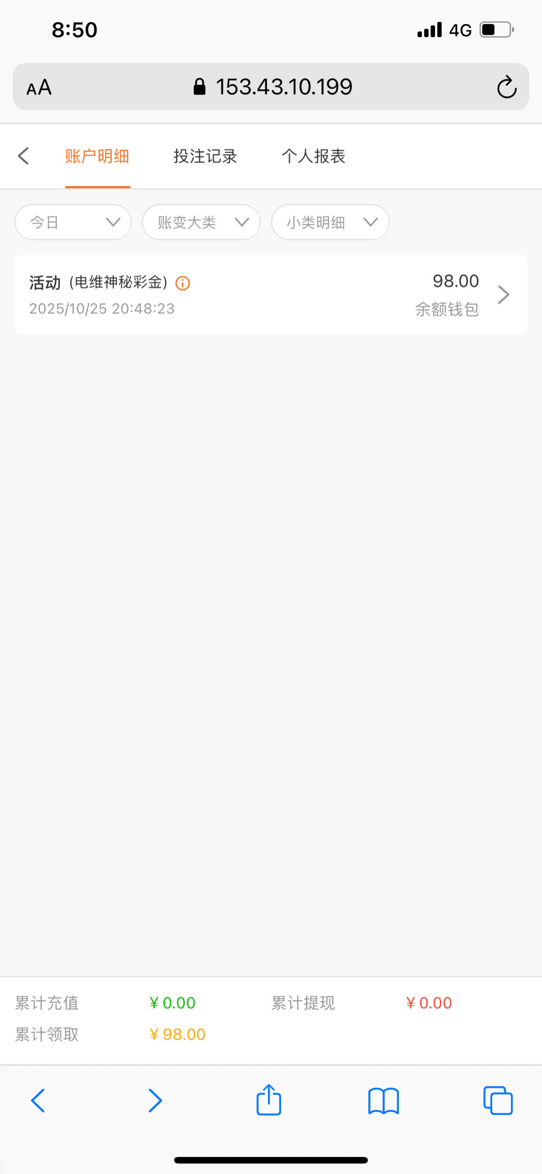 挺大的彩金,前天送我88,三倍水,满百提,以前稳稳出,现在没一点水温没有就挂了