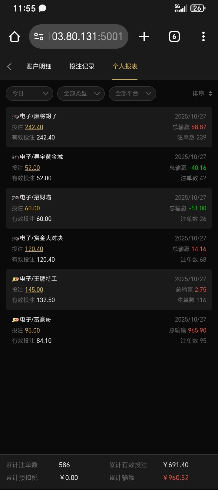 输了好多天了,虽然今天赢的不多,总比输好。