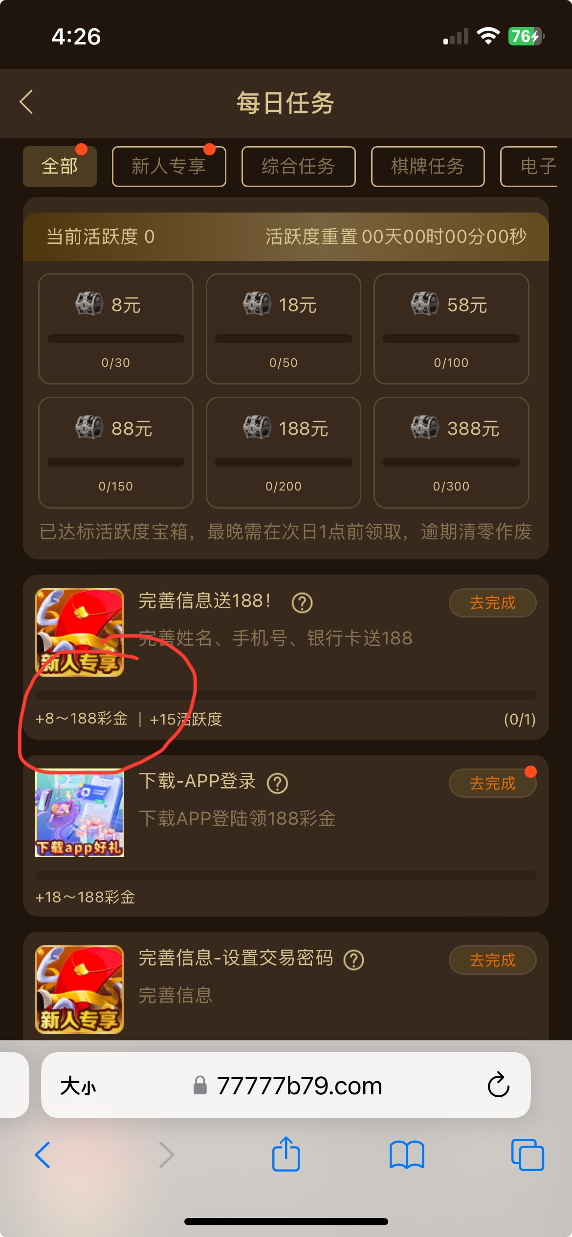 【乐游棋牌77777a】新人任务 白菜