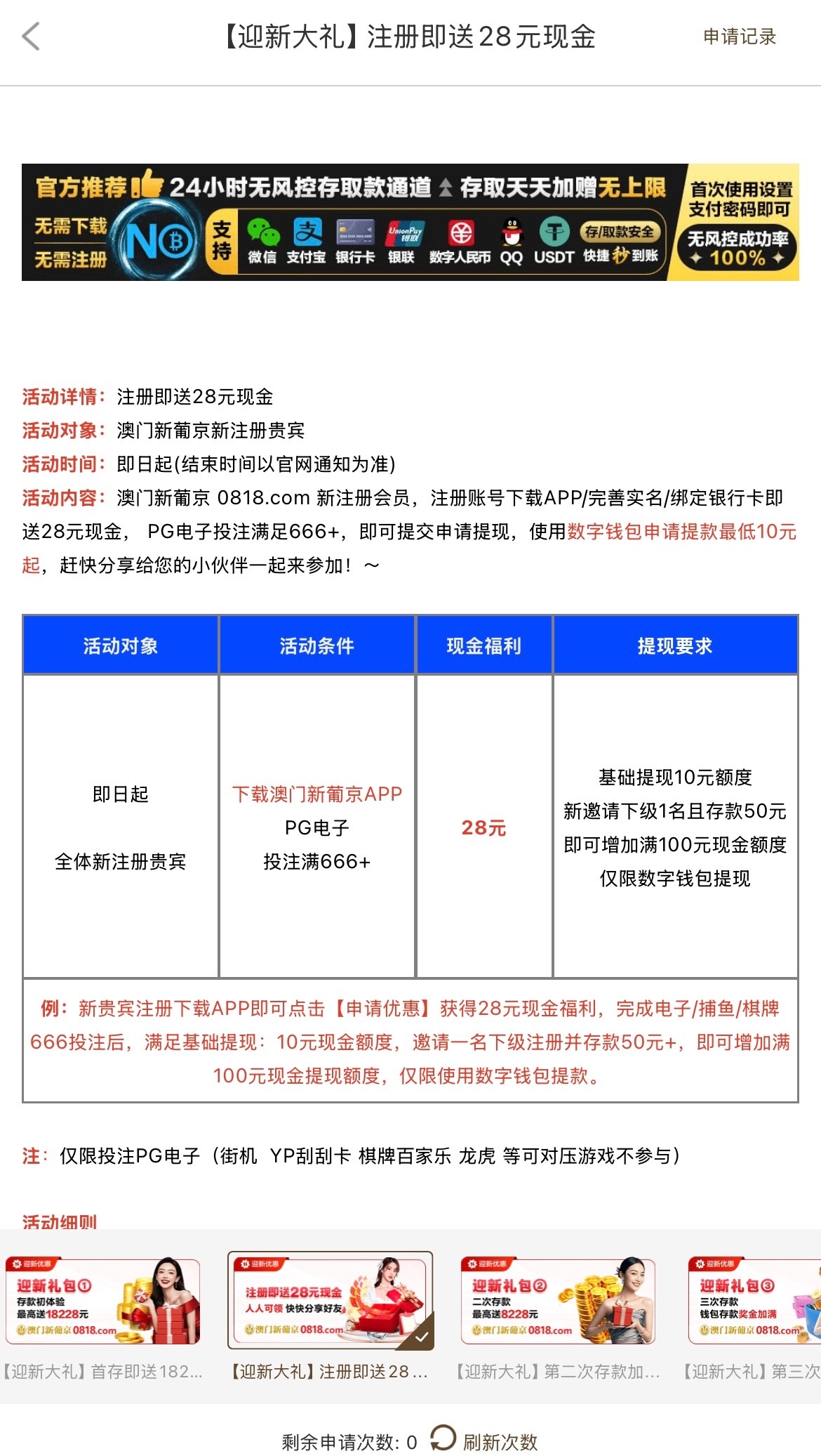 接到电话注册送28的优惠里自助申请 今天申请明天才能领