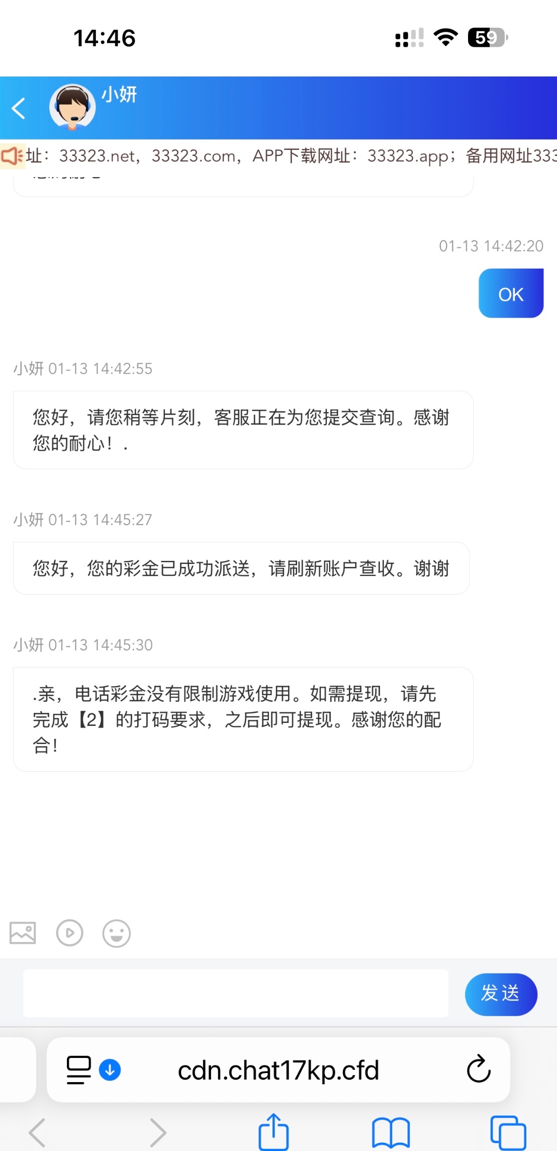 链接33323.net 电话彩金送58