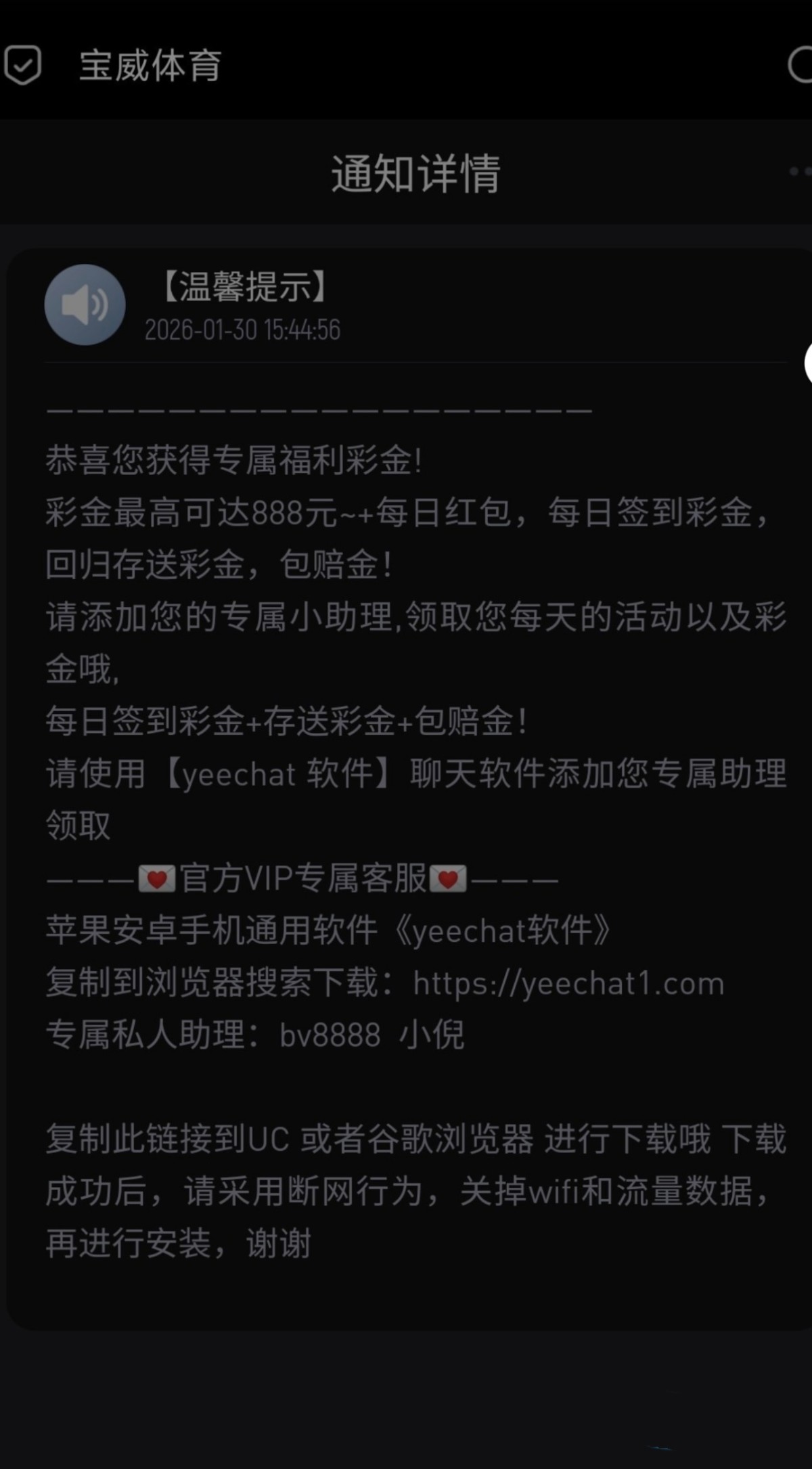 有号的下个yeechat加客服bv8888去碰瓷,没号的注册完了等站内信,过年这会儿经常送,我v0一个月领了两次18了