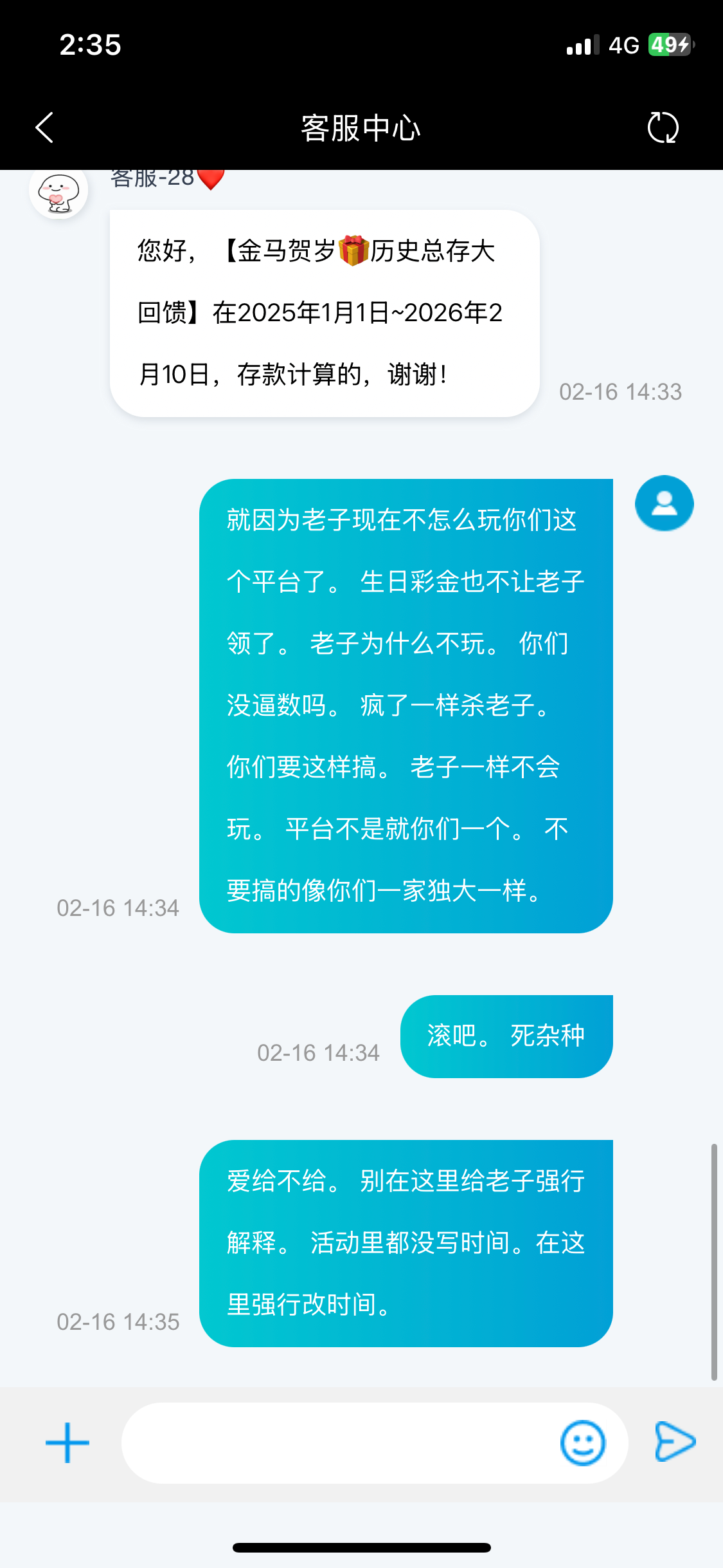 我生日彩金。还有去年历史总存都是达标十万元了的。 今年却只达标一万了。 我没话说